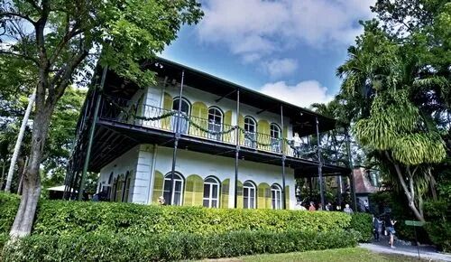 比邻灯塔红砖院墙,院内绿树葱葱——一块古旧的“海明威之家”暗绿色木牌,牵引我们回到那个时代。
