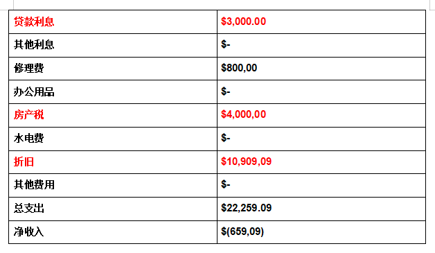 净收入变成了亏损,没有收入,在美国可以一直延续,房产已经涨价,折旧的部分可以用来抵扣缴税的,不要忽略任何一个费用。