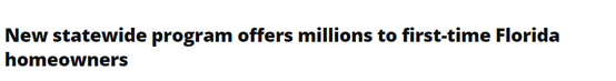 据WEAR-TV报道,佛州通过“家乡英雄住房计划”(Hometown Heroes Housing Program)向首次购房的佛罗里达房主拨款1亿美元。