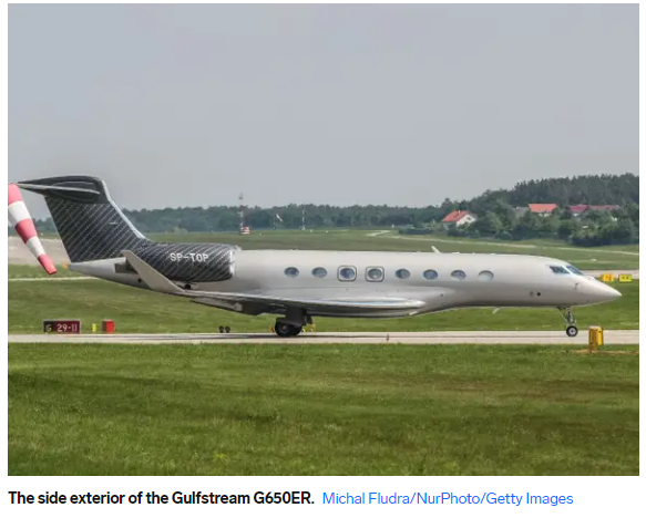 马斯克的私人飞机“湾流航天”(Gulfstream)是一架旗舰款喷射飞机,型号是G650ER,于2016年购入。