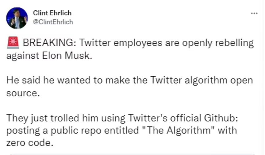 在4月一次 TED 会议上,马斯克详细阐述了自己想将公司算法打造为开源模型的计划,将允许用户查看代码,显示某些帖子是如何出现在他们的时间线上的;