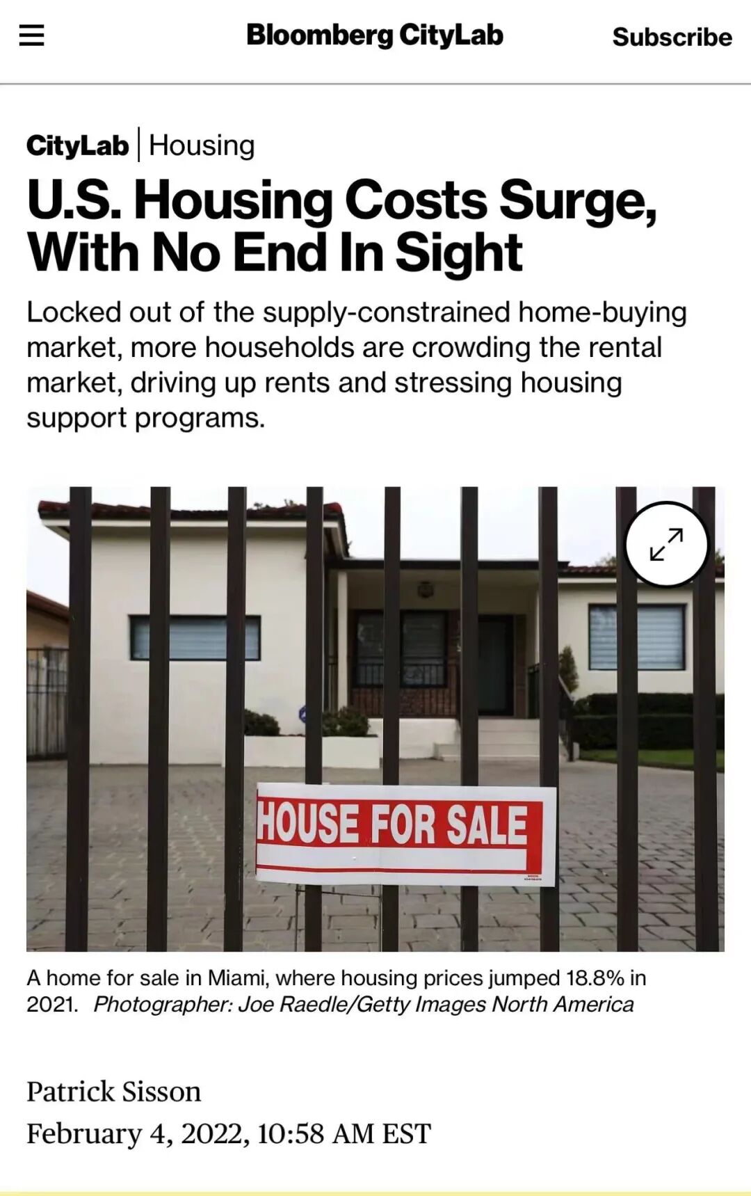 与此同时,公寓租赁网站 Dwellsy 发现,从 2021 年 12 月到 2022 年 1 月,全国平均租金仅在一个月内就上涨了 4.8%。