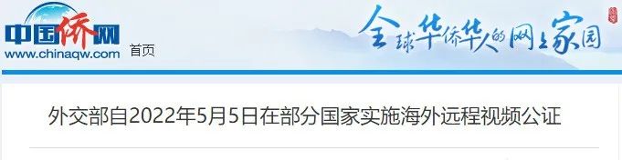 自2022年5月5日,海外远程视频公证将在60余个驻外使领馆实施。详情请及时关注中国驻当地使领馆发布的通知公告。外交部将及时总结经验,坚持为群众解难题、办实事,努力为海外中国公民提供更加优质、更为贴心的服务。